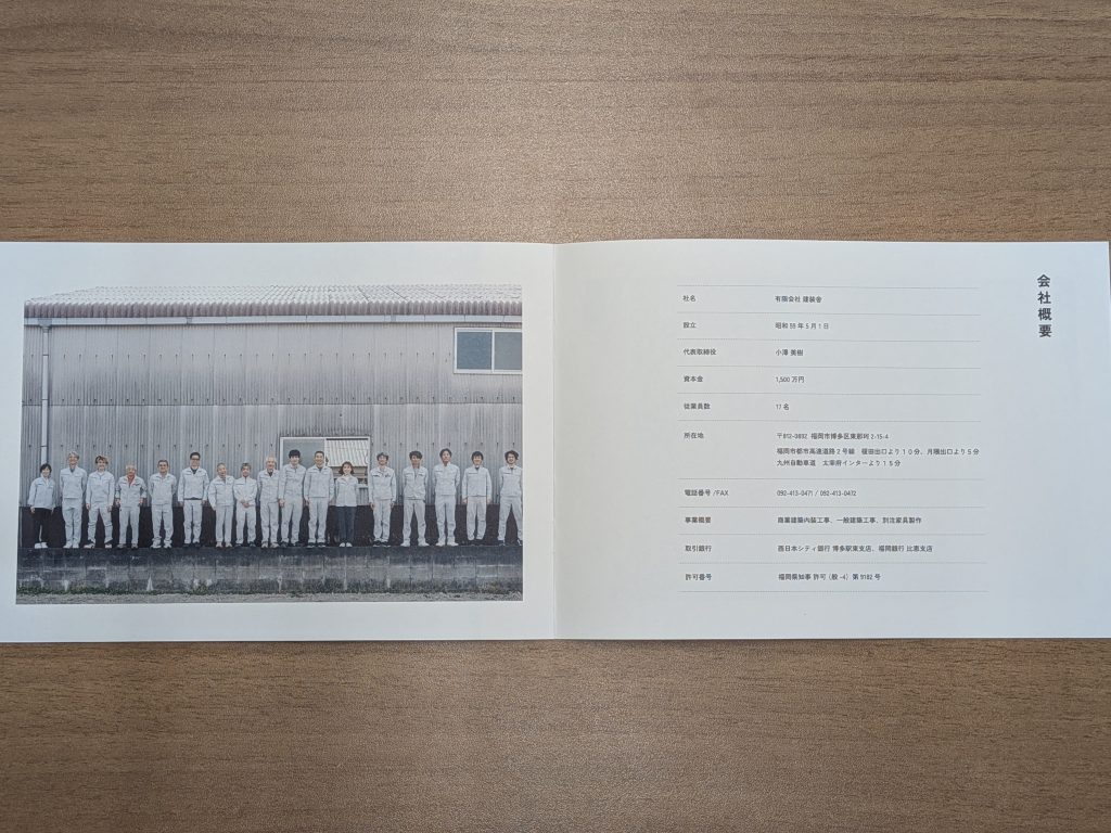 WEBデザイナーの方に、名刺や会社案内もお願いして作っていただきました。